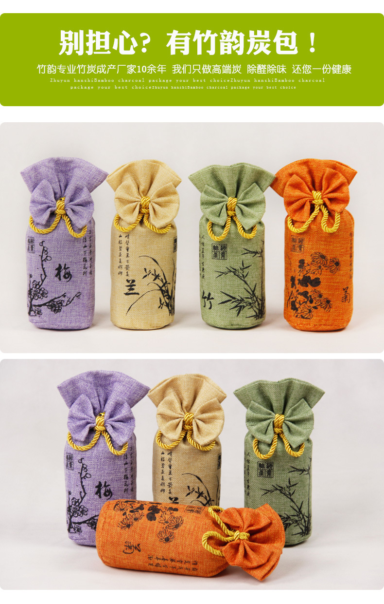 活性炭包家用汽车去甲醛麻布酒瓶梅兰竹菊一套250g*4袋