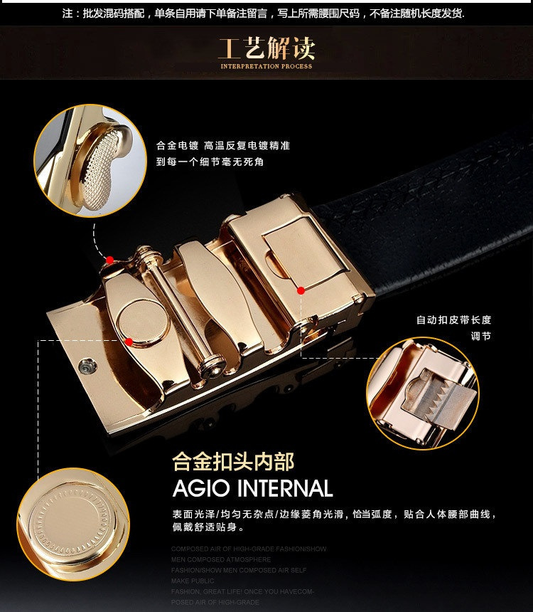 正品男士皮带 纯头层牛皮自动扣裤腰带